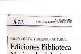 Edficiones Biblioteca Nacional adelanta proximos títulos [artículo] / Iñigo Díaz El Mercurio (Diario : Santiago, Chile)-- nov. 15, 2014, p. A22 .