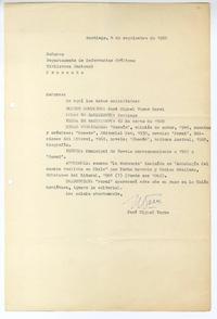 [Carta] 1968 septiembre 4, Santiago, Chile [a] Biblioteca Nacional de Chile [manuscrito] / José Miguel Varas Morel. 1 hoja ; 32,4 x 21,7 cm. .