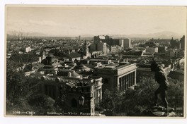 Chile - Santiago - Vista Panorámica [fotografía] / Foto Mora. Santiago : Foto Mora , [Entre 1939 y 1943]. 1 tarjeta postal : fotografía, monocromo, gelatina sobre papel ; 13,3 x 8,4 cm. .