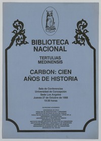 Carbón cien años de historia / [estampa] : Biblioteca Nacional de Chile, Tertulias Medinensis. Santiago, Chile : La Biblioteca, 1988. 1 cartel (afiche) : 2 colores ; 25 x 35 cm. .