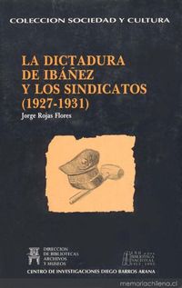 La dictadura de Ibáñez y los sindicatos : (1927-1931) / Jorge Rojas Flores. [Chile] : Dirección de Bibliotecas Archivos y Museos, impresión de 1993 (Santiago de Chile : Editorial Universitaria) 190 páginas : ilustraciones, retratos ; 23 cm .