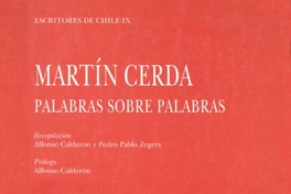 Palabras sobre palabras / Martín Cerda ; recopilación,Alfonso Calderón y Pedro Pablo Zegers ; prólogo, Alfonso Calderón. Santiago de Chile : DIBAM, Centro de Investigaciones Diego Barros Arana, c1997. 143 páginas ; retrato ; 25 cm. .