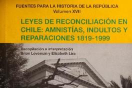 Leyes de reconciliación en Chile : amnistías, indultos y reparaciones, 1819-1999 / recopilación e interpretación Brian Loveman y Elizabeth Lira. [Santiago de Chile] : DIBAM, Centro de Investigaciones Diego Barros Arana : Universidad Jesuita Alberto Hurtado, 2001. 339 páginas : ilustraciones ; 23 cm. .