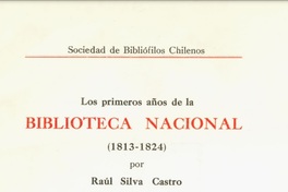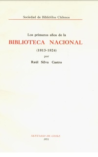 Los primeros años de la Biblioteca Nacional (1813-1824) / por Raúl Silva Castro. Santiago de Chile : Impr. Universitaria, 1951. 94 p., [2] h. de láms., (en carpeta) ; 31 cm. .