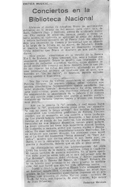 Conciertos en la Biblioteca Nacional Crítica Musical [artículo]
