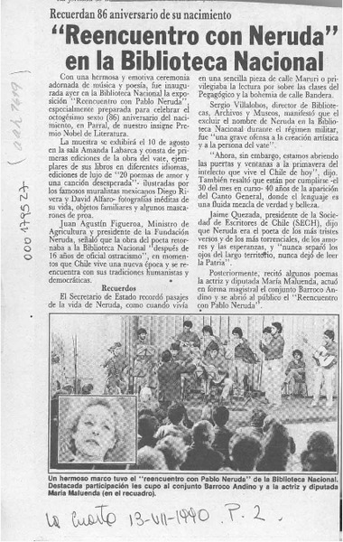 "Reencuentro con Neruda" en la Biblioteca Nacional [artículo].