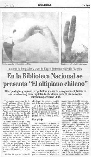 En la Biblioteca Nacional se presenta "El altiplano chileno". [artículo]