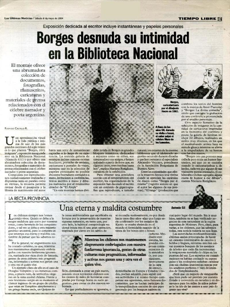 Borges desnuda su intimidad en la Biblioteca Nacional [artículo] Rodrigo Castillo R.