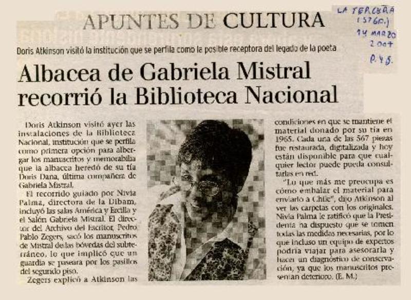 Gabriela Mistral presencia en la Biblioteca Nacional [artículo].