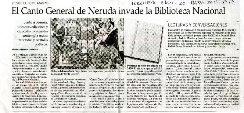 El canto general de Neruda invade la biblioteca Nacional [artículo] Maureen Lennon Zaninovic.