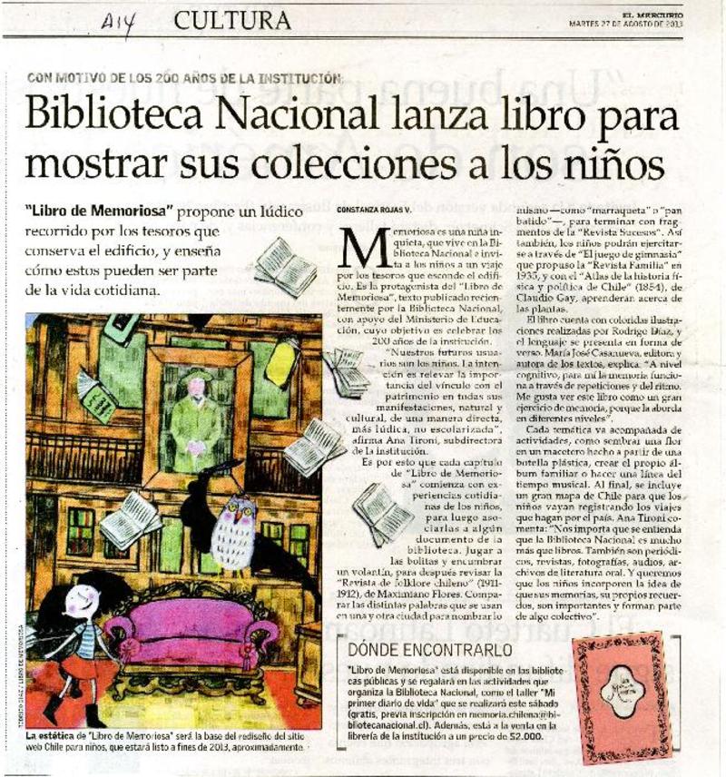 Biblioteca Nacional lanza libro para mostrar sus colecciones a los niños [artículo] Constanza Rojas V.