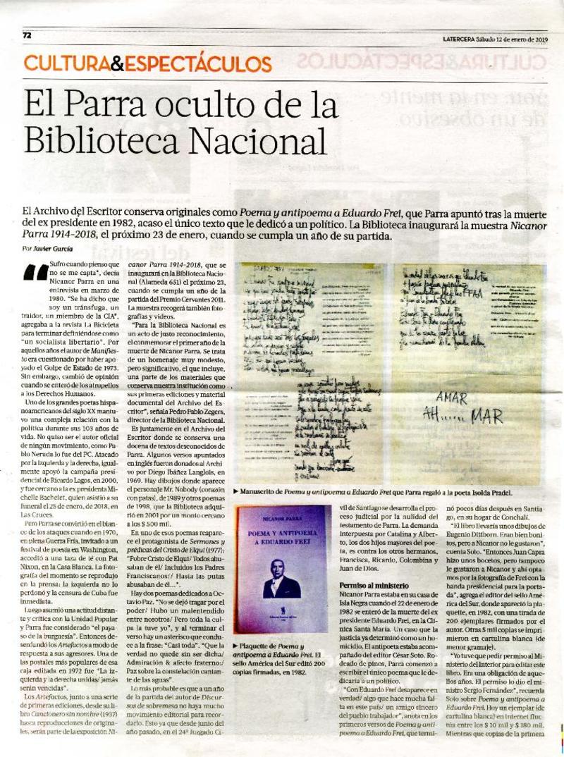 El Parra oculto de la Biblioteca Nacional [artículo] Javier García.